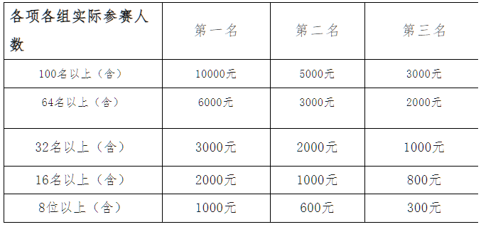 2.若每个弓种男子个人项目和女子个人项目任一组别实际参赛人数不足8人,则该弓种仅设置混合组,混合组实际参赛人数超过8人(含)按奖励办法标准给予奖励;混合组实际参赛人数不足8人,仅颁发奖牌、证书,不发放奖金。