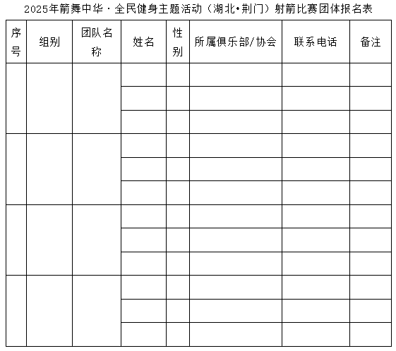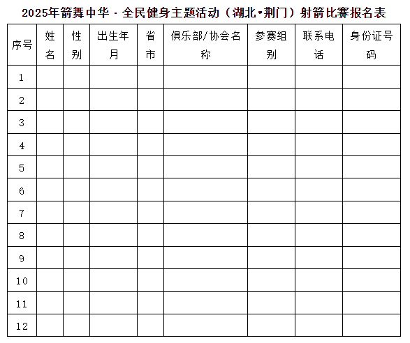 附件:1. 2025箭舞中华·全民健身主题活动(湖北•荆门)射箭比赛报名表