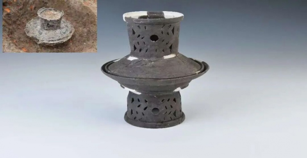 在大型建筑东南侧的土台上,发现筒形器与四耳器残片,普遍认为与祭祀活动相关,据此推测该区域应为举行仪式活动的场所。遗址还出土了“扣豆”遗存,这一现象为城河遗址首次发现,其镂孔工艺精湛,器表为磨光黑陶,制作精美,应与祭祀仪式密切相关。