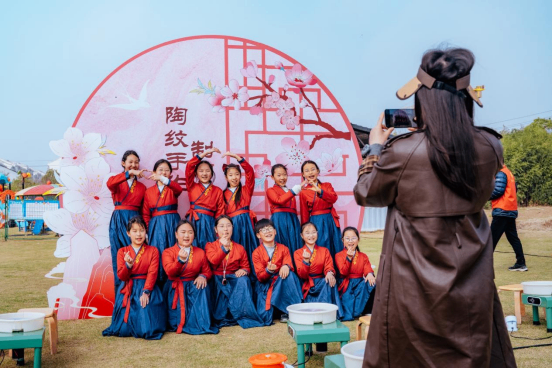 游客在屈家岭“遇见谷文明·TAO醉屈家岭”活动现场体验陶艺并拍照留念。邱活 摄